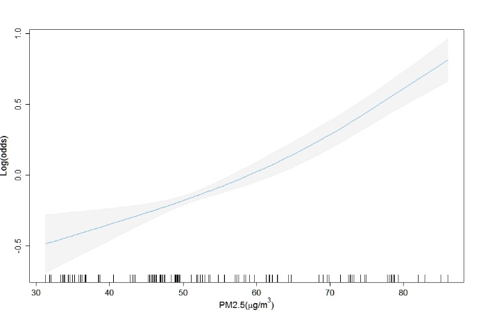 图2. 大气 PM2.5与慢性肾脏病患病率的暴露反应关系图