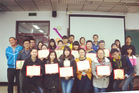 最后,在主席团的带领下,由13级的部长团亲手将聘书交给14级新任部长团,13,14级部长团举行大合照,主席团致谢幕词,宣布2013级部长团欢送会圆满落幕。