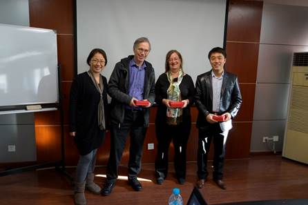 最后双语教学兴趣小组组长吴涛老师向John Davy教授和李晏锋老师赠送讲座纪念品,并且期待下次的讲座,为老师们搭建思想交流和扩展视野的平台。