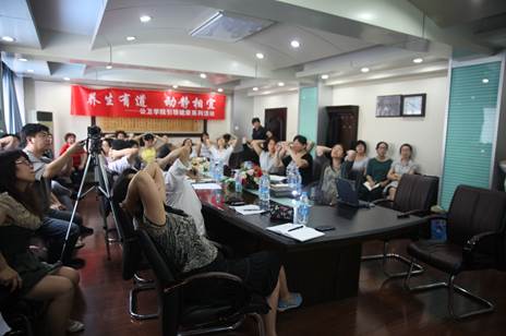 6月26日下午,必赢中国官方网站工会“养生有道,动静相宜”引领健康系列活动之二——养生座谈,在公卫学院220会议室召开。此系列活动为医学部工会“权益杯”活动之一。本次座谈邀请了两位专家:必赢中国官方网站营养与食品卫生学系运动营养专家李可基教授,和必赢中国官方网站第三医院运动医学研究所杨渝平副教授。公卫学院党委副书记、工会主席詹思延主持座谈会。在学院工会的积极宣传下,我院教职工非常踊跃地参与了此次座谈。座谈会还吸引了部分兄弟学院的老师共同参与。